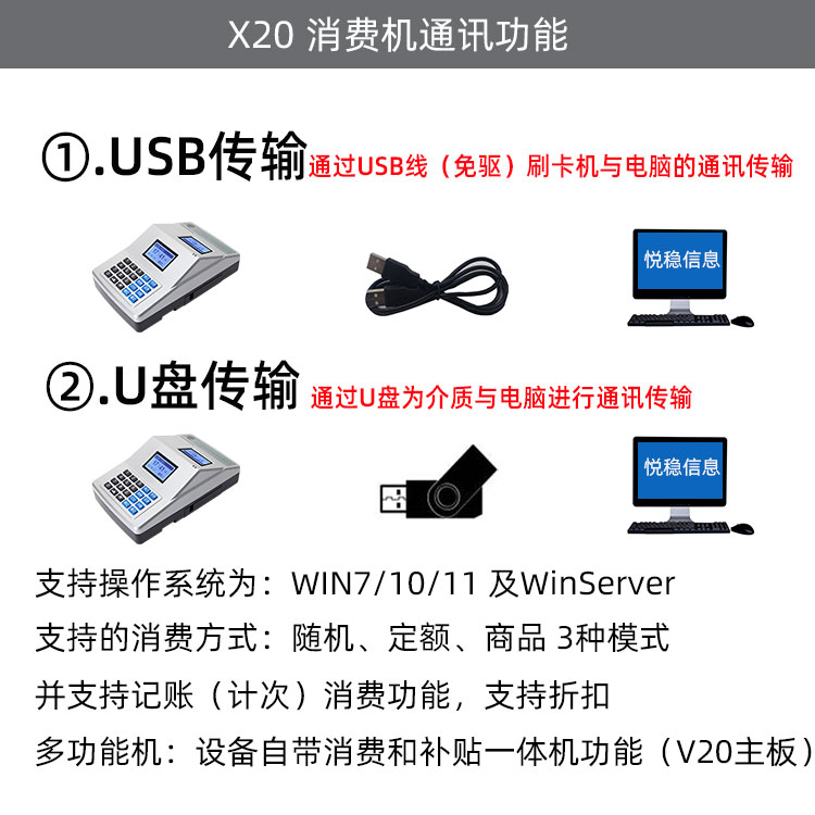 型号X20T:标配U盘+USB+TCP网口(可扩展无线WiFi和4G通讯)